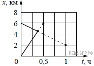 Версия для печати и копирования в MS WordПляж на озере и посёлок соединены прямолинейным участком дороги длиной 6 км. В тот момент, когда Аня на велосипеде отправилась из посёлка на озеро со скоростью 12 км/ч, ей навстречу пешком с пляжа в посёлок отправилась Света со скоростью 4 км/ч. Постройте графики зависимости координаты от времени для обеих девочек до момента их встречи. Начало координат связано с посёлком, направление оси x соответствует движению по направлению к озеру.