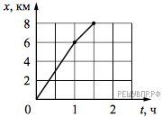 Версия для печати и копирования в MS Word В течение первого часа пути по прямолинейному участку дороги Сергей двигался со скоростью 6 км/ч, а затем в течение 30 мин. со скоростью 4 км/ч. Постройте график зависимости координаты Сергея от времени на всем пути. Начало координат соответствует началу движения, ось x направлена по направлению движения мальчика.
