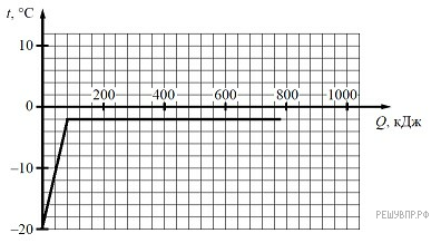 Версия для печати и копирования в MS WordЗамороженный фруктовый сок при температуре −20 °C достали из морозильника и стали равномерно нагревать. На нагревание сока было затрачено примерно 80 кДж энергии, а на его плавление примерно 700 кДж. Температура плавления сока примерно равна −2 °C. Постройте график зависимости температуры сока от полученного количества теплоты.