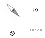 Версия для печати и копирования в MS WordМагнитная стрелка компаса зафиксирована (северный полюс затемнен, см. рис.). К компасу поднесли на равном расстоянии два проводника с одинаковым постоянным электрическим током (проводники расположены перпендикулярно плоскости рисунка), затем освободили стрелку, она повернулась и остановилась в новом положении. Изобразите новое положение стрелки.