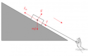 Версия для печати и копирования в MS WordПо горке из неподвижного состояния начинает съезжать груз, к которому прикреплена нерастяжимая нить, за которую тянут в направлении подножия горки. Нарисуйте все силы, действующие на груз. Куда направлена суммарная сила, действующая на груз?