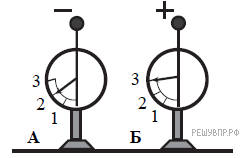 На рисунке изображены два одинаковых электрометра, шары которых имеют заряд противоположных знаков. Каковы будут показания обоих электрометров, если их шары соединить тонкой медной проволокой?