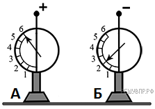 На рисунке изображены два одинаковых электрометра. Шар электрометра А заряжен положительно и показывает 6 единиц заряда, шар электрометра Б заряжен отрицательно и показывает 2 единицы заряда. Каковы будут показания электрометров, если их шары соединить тонкой алюминиевой проволокой?