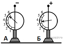 На рисунке изображены два одинаковых электрометра. Шар электрометра А заряжен отрицательно и показывает 5,5 единиц заряда, шар электрометра Б заряжен положительно и показывает 3,5 единиц заряда. Каковы будут показания электрометров, если их шары соединить тонкой серебряной проволокой?