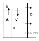 Четыре металлических бруска (A, B, C, D) положили вплотную друг к другу как показано на рисунке. Стрелки указывают направление теплопередачи от бруска к бруску. Температуры брусков составляют 100, 120,130, 140 градусов Цельсия. Какой из брусков имеет температуру 120 °C?