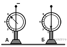 На рисунке изображены два одинаковых электрометра. Шар электрометра А заряжен отрицательно и показывает 9 единиц заряда, шар электрометра Б не заряжен. Каковы будут показания электрометров, если их шары соединить тонкой алюминиевой проволокой?