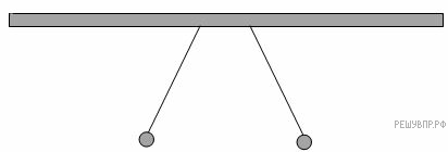 В поле силы тяжести качаются два одинаковых шара на одинаковой длины упругих нерастяжимых нитях, как показано на рисунке. Всякий раз они испытывают абсолютно упругое соударение друг с другом ровно посередине между точками их подвеса, трения о воздух нет. ____ энергия системы сохраняется, ____ энергия до соударения больше, чем в момент соударения, ____ энергия до соударения меньше, чем в момент соударения,.