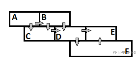 Шесть металлических брусков (А, B, C, D, E, F) положили вплотную друг к другу, как показано на рисунке. Стрелки указывают направление теплопередачи от бруска к бруску. Температуры брусков в данный момент составляют 100 °C, 80 °C, 60 °C, 40 °C, 20 °C, 10 °C. Какой из брусков имеет температуру 60 °C?