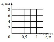 Пляж на озере и посёлок соединены прямолинейным участком дороги длиной 6 км. В тот момент, когда Аня на велосипеде отправилась из посёлка на озеро со скоростью 12 км/ч, ей навстречу пешком с пляжа в посёлок отправилась Света со скоростью 4 км/ч. Постройте графики зависимости координаты от времени для обеих девочек до момента их встречи. Начало координат связано с посёлком, направление оси x соответствует движению по направлению к озеру.