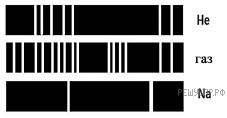 На рисунках приведены спектры излучения атомарных паров гелия, неизвестного газа и натрия (см. рис.).
