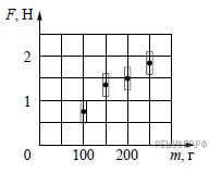 Космонавты исследовали зависимость силы тяжести от массы тела на посещённой ими планете. Погрешность измерения силы тяжести равна 0,25 Н, а массы тела – 5 г. Результаты измерений с учётом их погрешности представлены на графике.