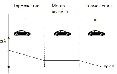 Пользуясь графиком υ(t) и данными рисунка изобразите все силы, действовавшие на машину в промежутке времени I, II и III опишите характер движения машины. Силу трения учитывать.