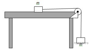 На рисунке показана система из двух одинаковых грузов, соединенная упругой нерастяжимой нитью, перекинутой через блок. Изобразите все силы, если известно, что груз, находящийся на шершавом столе пришел в движение как только висящий груз присоединили к нити. Как перемещается груз по столу? Трением блока пренебречь.