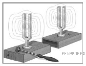 Два одинаковых камертона устанавливают друг напротив друга (см. рис.). Когда по одному из них ударяют резиновым молоточком, то начинает звучать и второй камертон. Какое явление наблюдается в этом опыте?