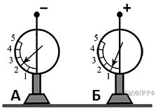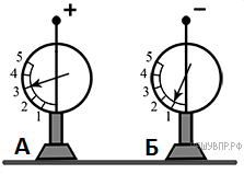 На рисунке изображены два одинаковых электрометра. Шар электрометра А заряжен отрицательно и показывает 2 единицы заряда, шар электрометра Б заряжен положительно и показывает 1 единицу заряда. Каковы будут показания электрометров, если их шары соединить тонкой серебряной проволокой?