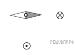 Магнитная стрелка компаса зафиксирована (северный полюс затемнен, см. рис.). К компасу поднесли проводник с током (проводник расположен перпендикулярно плоскости рисунка), затем освободили стрелку, она повернулась и остановилась в новом положении. Изобразите новое положение стрелки.