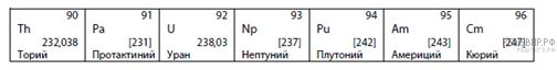 На рисунке изображён фрагмент Периодической системы химических элементов Д. И. Менделеева. Изотоп урана испытывает α-распад, при котором образуются ядро гелия и ядро другого элемента. Определите, какой элемент образуется при α-распаде изотопа урана.